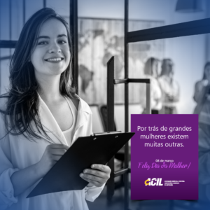 Nós da diretoria da ACIL, na data que se comemora o dia internacional da mulher, nossa entidade reconhece a importância do seu papel quer nas empresas, escolas, lares e em todos os segmentos da sociedade.